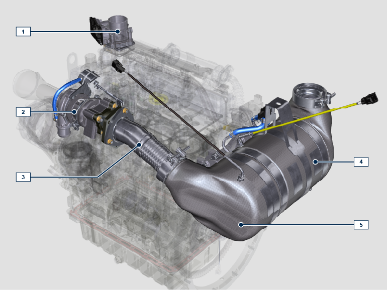 | NOTE: The ATS system is only present for versions that conform to "Stage V" emission regulations. The ATS system can be mounted differently than the figure. |