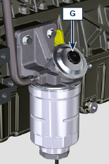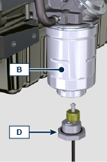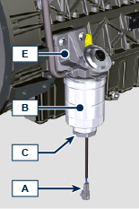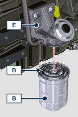 - Tighten the new cartridge B on the diesel fuel filter support E (tightening torque of 17 Nm).