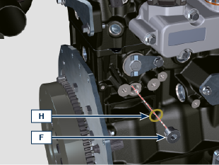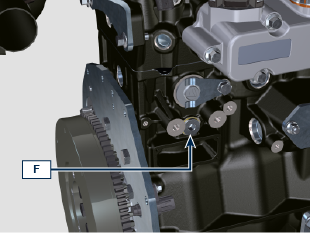 - Tighten the drain oil plug F (tightening torque at 35 Nm).