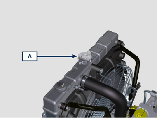 - Loosen the cap A and fill the radiator with coolant composed of: 50% ANTIFREEZE and 50% decalcified water.