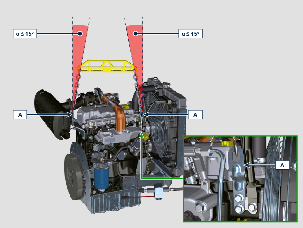 On starting, make sure that the engine is as horizontal as possible, unless the machine specifications differ.