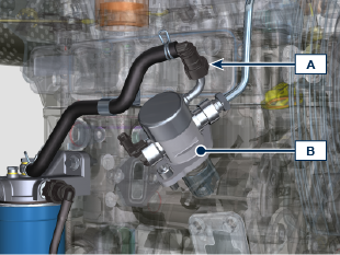 - Disconnect the connector A from injection pump B and put the connector A in a proper container.