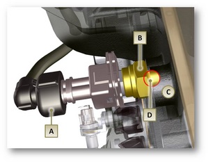 Location: Mounted in a port in the cylinder head, next to the thermostat housing.