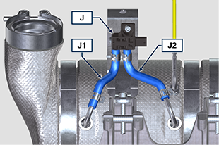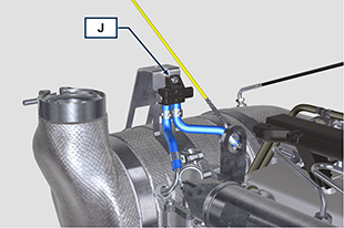 The Delta-P sensor J detects the clogging level of the DPF filter.