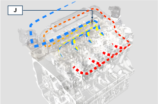 The P coolant temperature sensor of the coolant circuit is applied to the cylinder head on the side of the thermostatic valve.