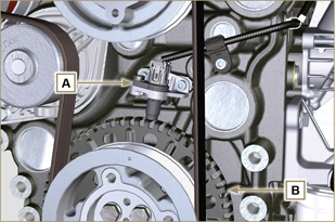 The sensor detects the signal from the target wheel B (60 - 2teeth) situated on the crankshaft pulley. It sends it to the ECU as an analogical signal.