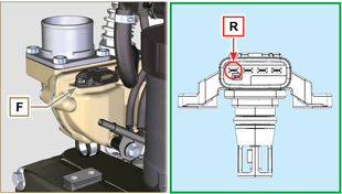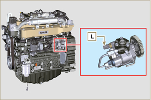 The fuel temperature sensor L is situated on the high-pressure fuel injection pump. The fuel temperature sensor L, measures the temperature of the fuel entering the pump at high pressure. The signal sent to the ECU is analogue. The resistance detected by the ECU is proportional to the fuel temperature.