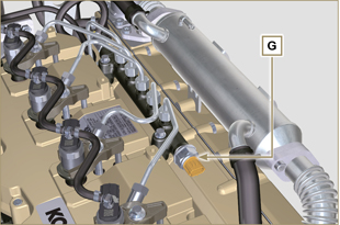 Fuel pressure sensor G assembled on the Common Rail, detects the fuel pressure inside it by means of electrical voltage variation. Depending on the signal sent, ECU manages the fuel intake valve on the injection pump and, if necessary, modifies the injection strokes.