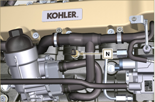 Oil pressure switch N is assembled on the crankcase near to the injection pump.